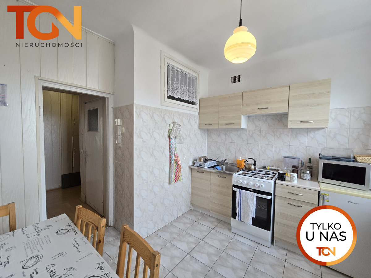 Lokal ze względu na rozkład pomieszczeń oferuje możliwość rearanżacji pomieszczeń i utworzenia pokoju dziennego z aneksem kuchennym i odrębnej sypialni w miejscu obecnej kuchni. Na podłogach znajduje się gruby drewniany parkiet. Ekspozycja okien sprawia, że wnętrze jest widne i przytulne. Do mieszkania przynależy wygodna komórka lokatorska.