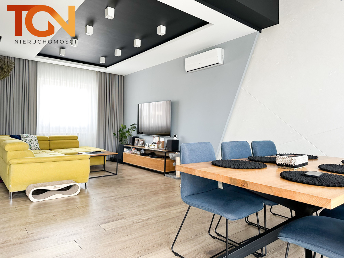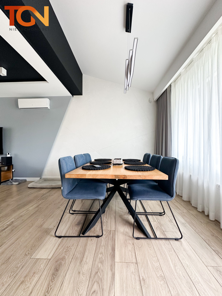 - Dwie klimatyzowane przestrzenie: salon i główna sypialnia