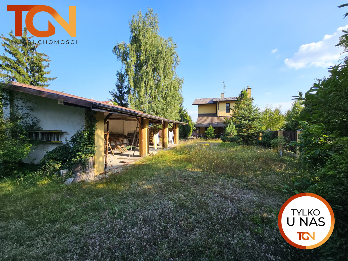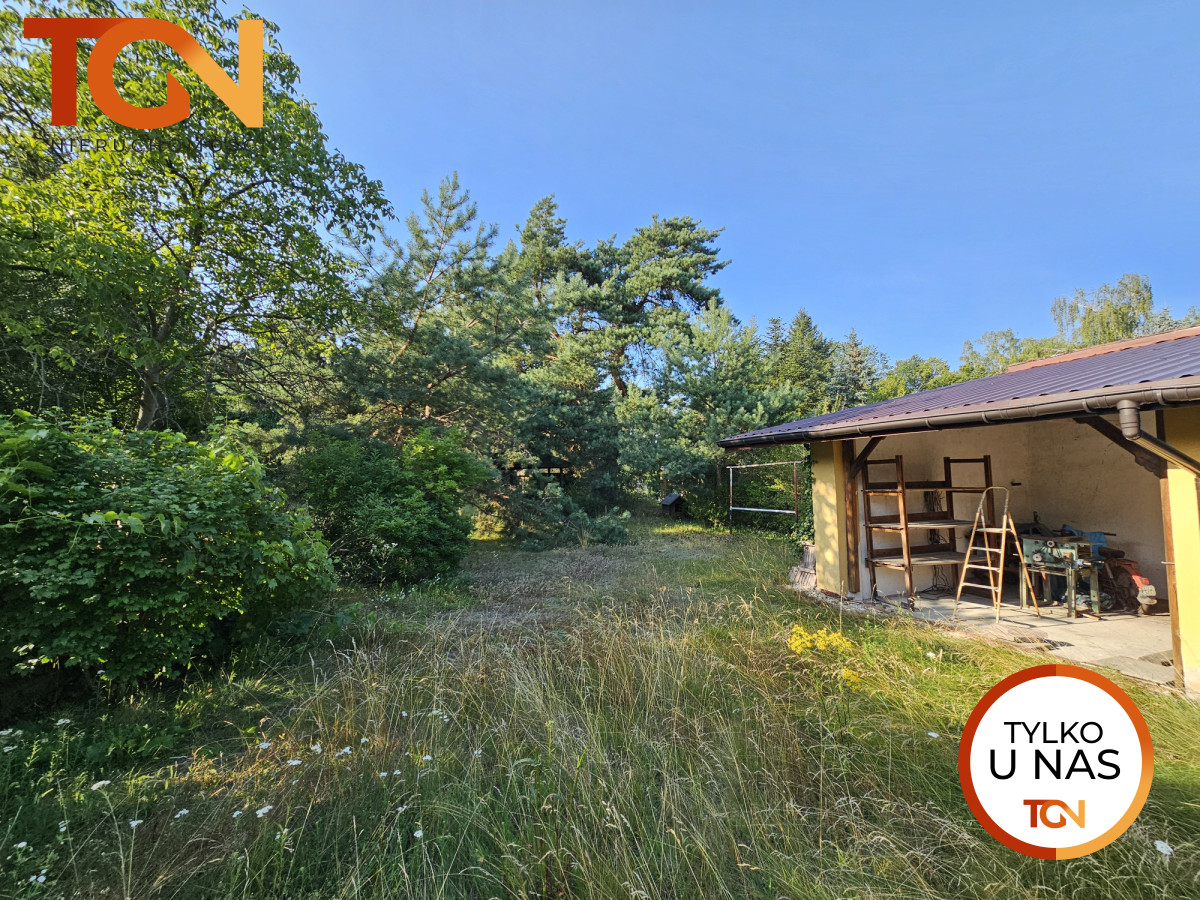 Od strony ogrodu znajduje się zewnętrzny taras, murowany wolnostojący warsztat oraz drewniana altana.