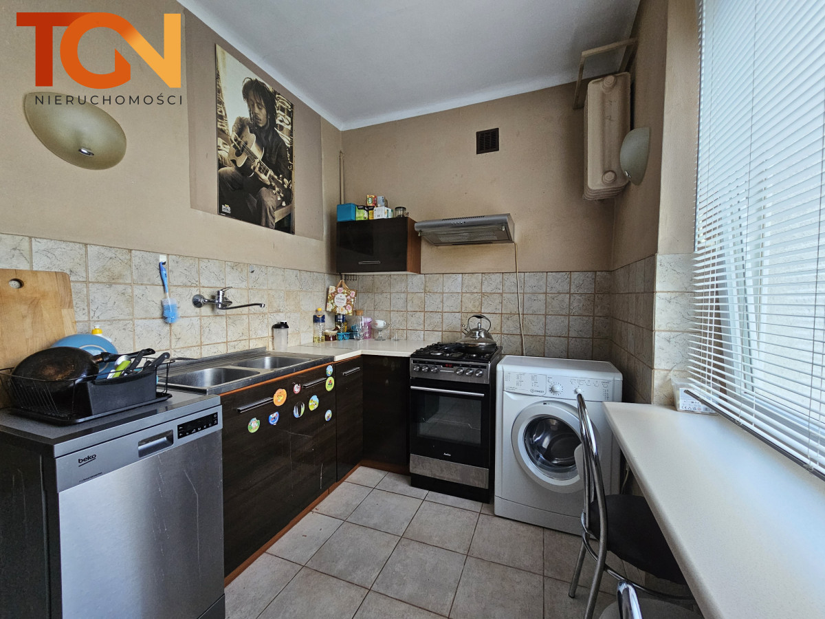 Kuchnia wyposażona jest w piekarnik, kuchenkę gazową, zmywarkę, lodówkę, mikrofalówkę i pralkę. W łazience znajduje się prysznic. Na podłogach w pokojach znajduje się drewniany parkiet.