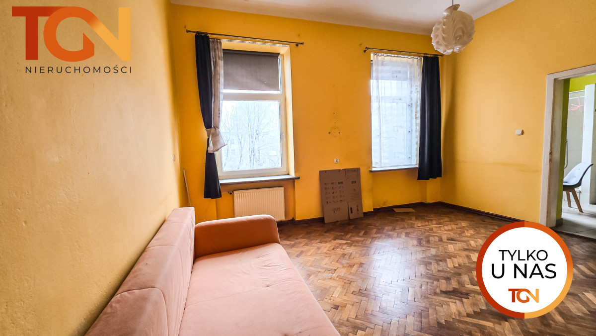 Mieszkanie jest do remontu, co daje nowemu właścicielowi pełną swobodę w zaprojektowaniu wnętrza według własnych potrzeb i gustu. Funkcjonalny układ pomieszczeń umożliwia wiele rozwiązań - istnieje możliwość stworzenia przestronnego salonu z aneksem kuchennym oraz wydzielenia dodatkowej sypialni, co znacząco zwiększa komfort użytkowania oraz wartość nieruchomości.