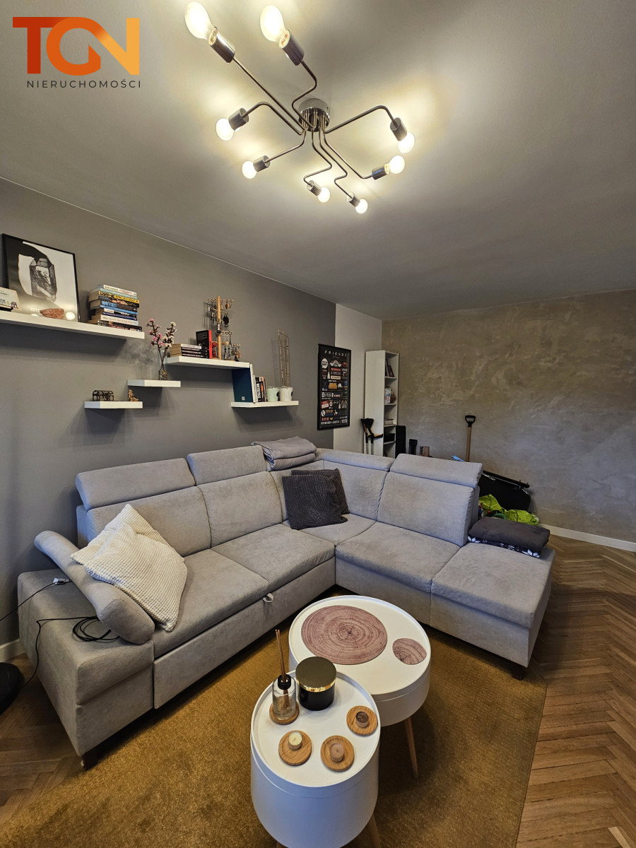 Mieszkanie jest gotowe do wprowadzenia, nie wymaga żadnych nakładów finansowych. To propozycja dla osób, które cenią klimatyczne wnętrza, solidne materiały i pełen komfort codziennego życia.