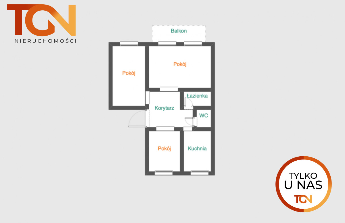 Lokal składa się z trzech niezależnych pokoi, oddzielnej kuchni, łazienki, osobnego WC oraz przedpokoju z dużą ilością miejsca do przechowywania. Dodatkowym atutem jest zabudowana loggia, która stanowi idealne miejsce do wypoczynku lub dodatkową przestrzeń użytkową.