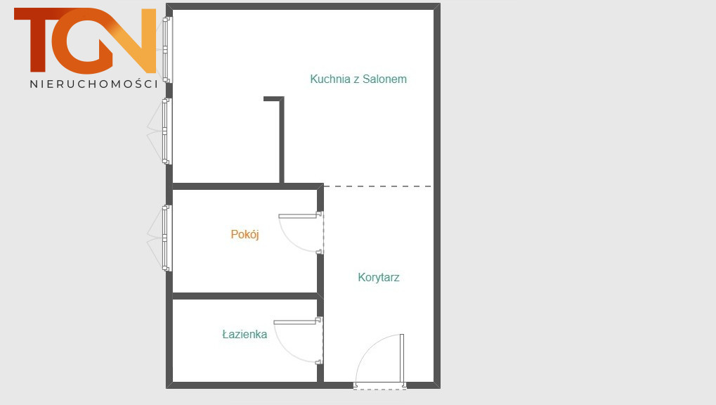 - liczba pokoi 2 (salon z aneksem plus sypialnia z dużą szafą)