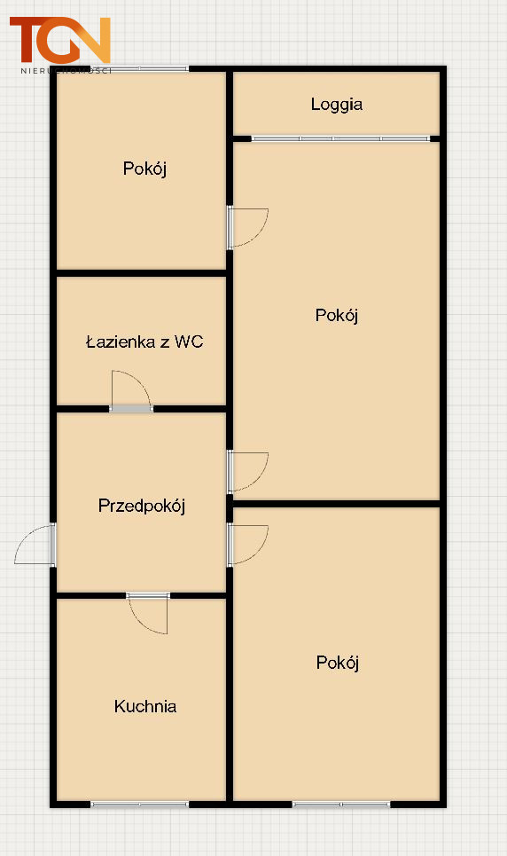 - salonu z wyjściem na loggię,