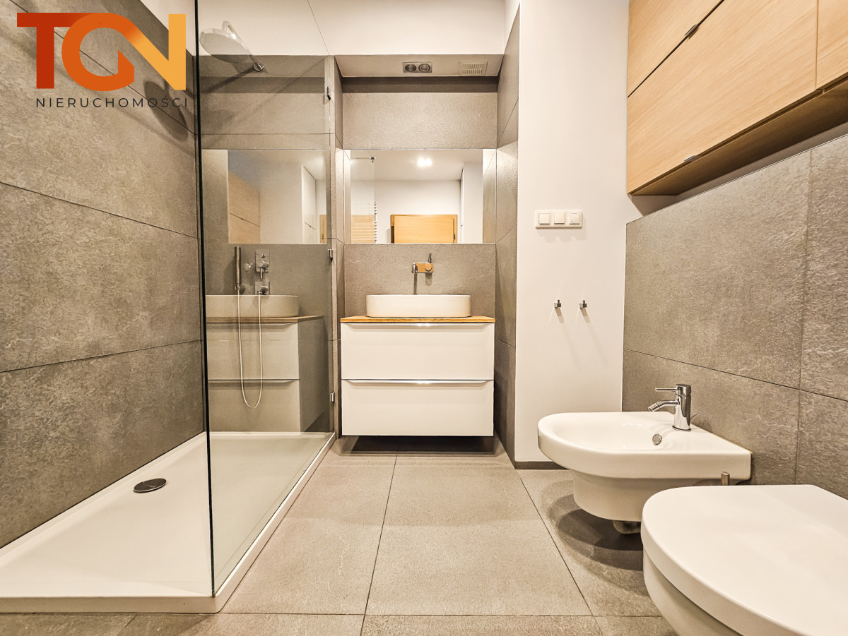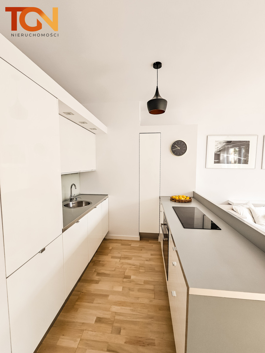- Apartament wyposażony w wysokiej jakości zabudowę meblową wykonaną na wymiar przez stolarza.