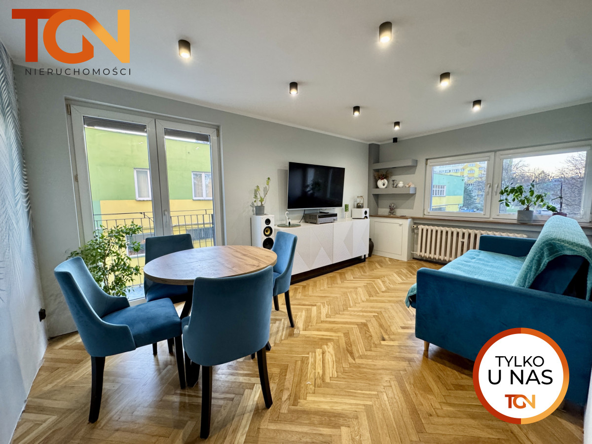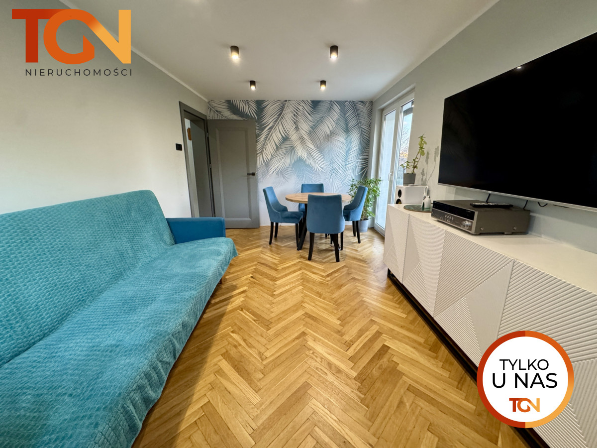 - Przestronny salon z wyjściem na balkon - świeżo odświeżony, z pięknie zachowanym parkietem w jodełkę; idealne miejsce do wypoczynku i spotkań.